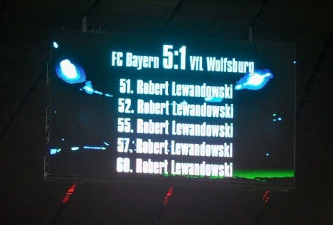 Bảng điện tử với tên của Lewandowski sau khi trận đấu kết thúc