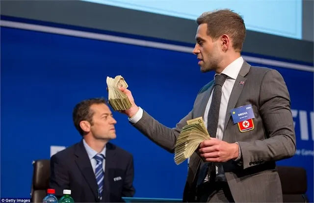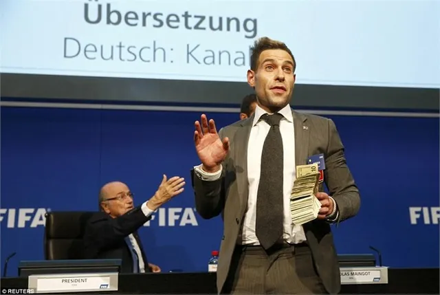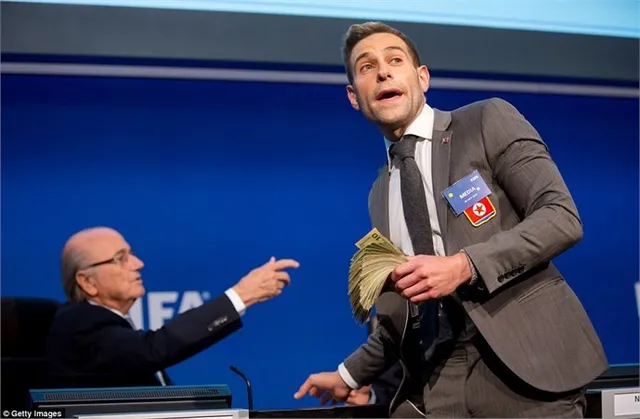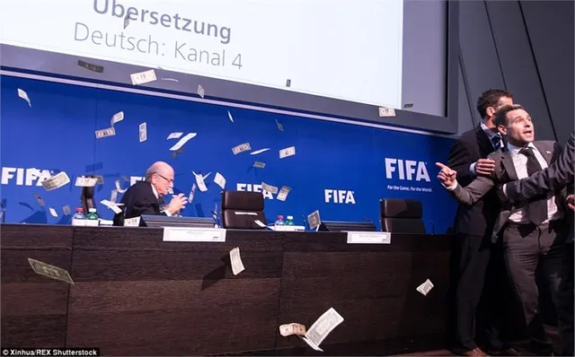 ông đây Sepp' rồi ném cả xấp tiền giả vào Blatter. Chủ tịch FIFA không