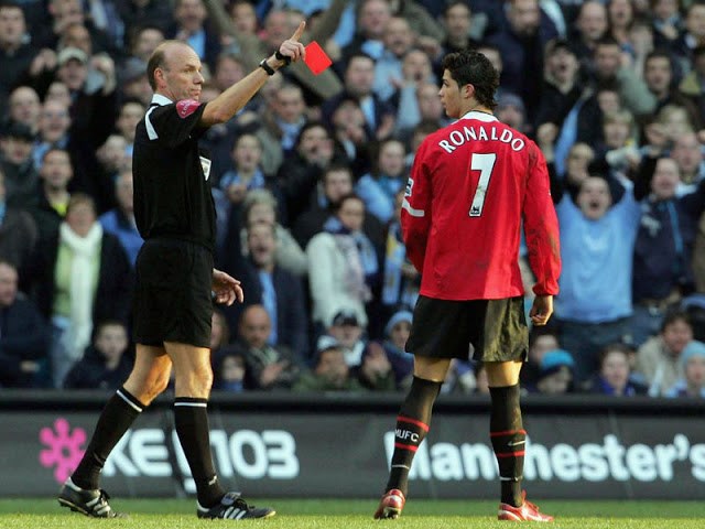 Howard Webb đã đuổi Ronaldo với hai tình huống rút thẻ vàng. Thẻ vàng đầu tiên là tình huống anh phạm lỗi với Shaun Wright-Phillips và thẻ vàng thứ hai đến từ tình huống anh nỗ lực dùng tay ghi bàn sau quả phạt góc của Wayne Rooney.