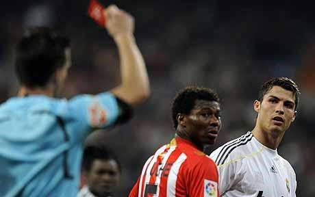 Thẻ đỏ đầu tiên của Ronaldo trong màu áo cho Real Madrid và cũng là thẻ đỏ đầu tiên anh phải nhận khi thi đấu trên sân nhà đến ở mùa giải đầu tiên anh thi đấu ở La Liga khi Almeria đến làm khách trên sân Bernabeu vào tháng 12 năm 2009.