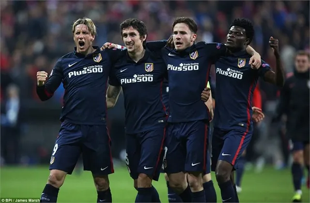 Niềm vui thắng trận của các cầu thủ Atl Madrid