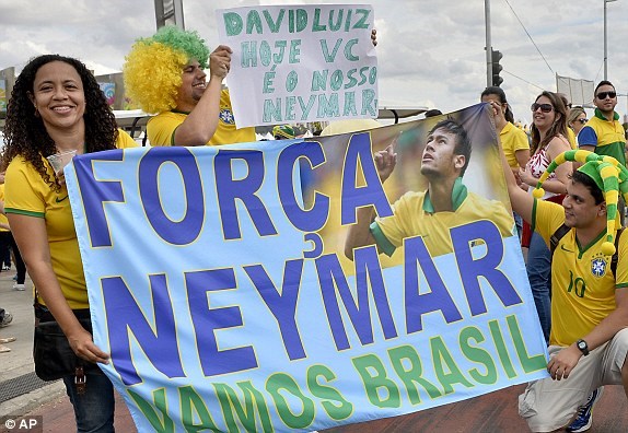 Câu cửa miệng của các cổ động viên Brazil những ngày này là 'forca Neymar, vamos Brazil'. Và bây giờ cả sân vận động Mineirao cùng cử quốc ca của Brazil với chiếc áo của Neymar, đúng với tinh thần 'chiến đấu vì Neymar'.